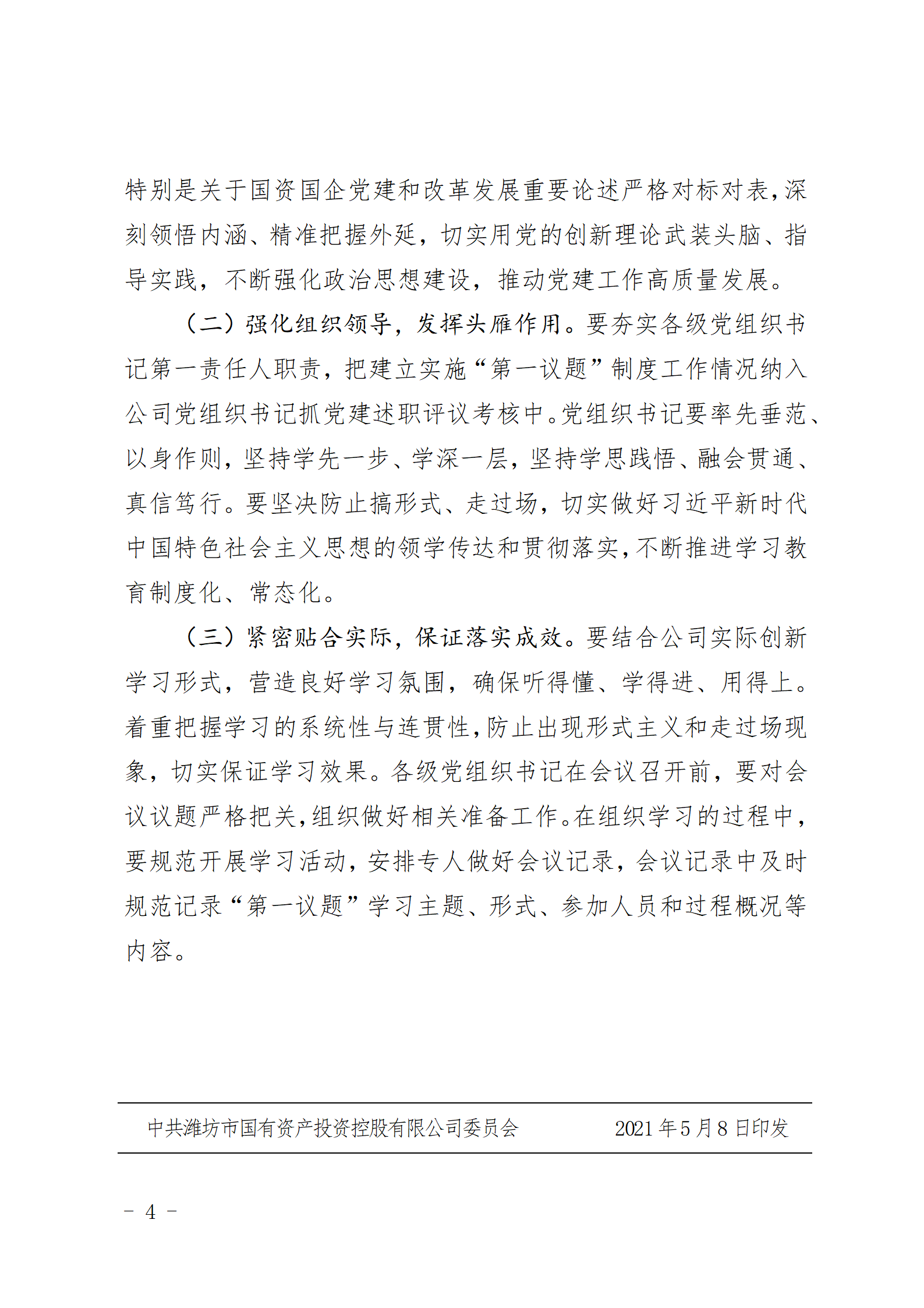關(guān)于印發(fā)《濰坊市國有資產(chǎn)投資控股有限公司“第一議題”制定》的通知
