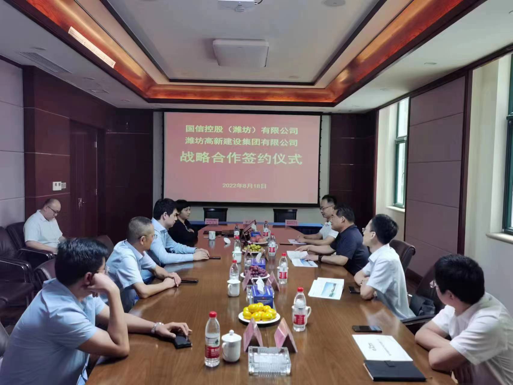 ? ? ? 2022年8月18日,國信控股(濰坊)有限公司與濰坊高新建設(shè)集團有限公司簽署戰(zhàn)略合作協(xié)議,雙方擬利用各自資源優(yōu)勢,以建設(shè)項目為依托,通過建設(shè)項目管理咨詢、企業(yè)管理咨詢、供應(yīng)鏈金融等模式開展深度合作,實現(xiàn)互惠共贏。? ?