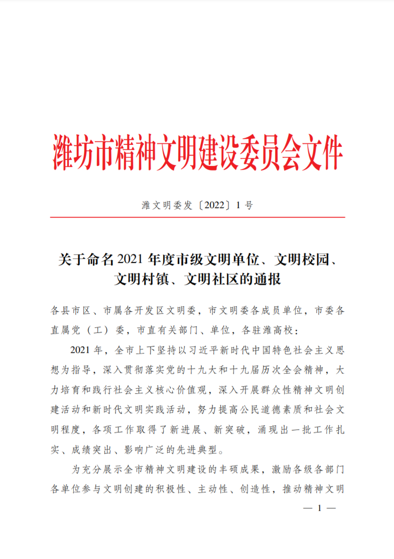 [喜訊]濰坊市國有資產(chǎn)投資控股有限公司榮獲“濰坊市市級文明單位”稱號